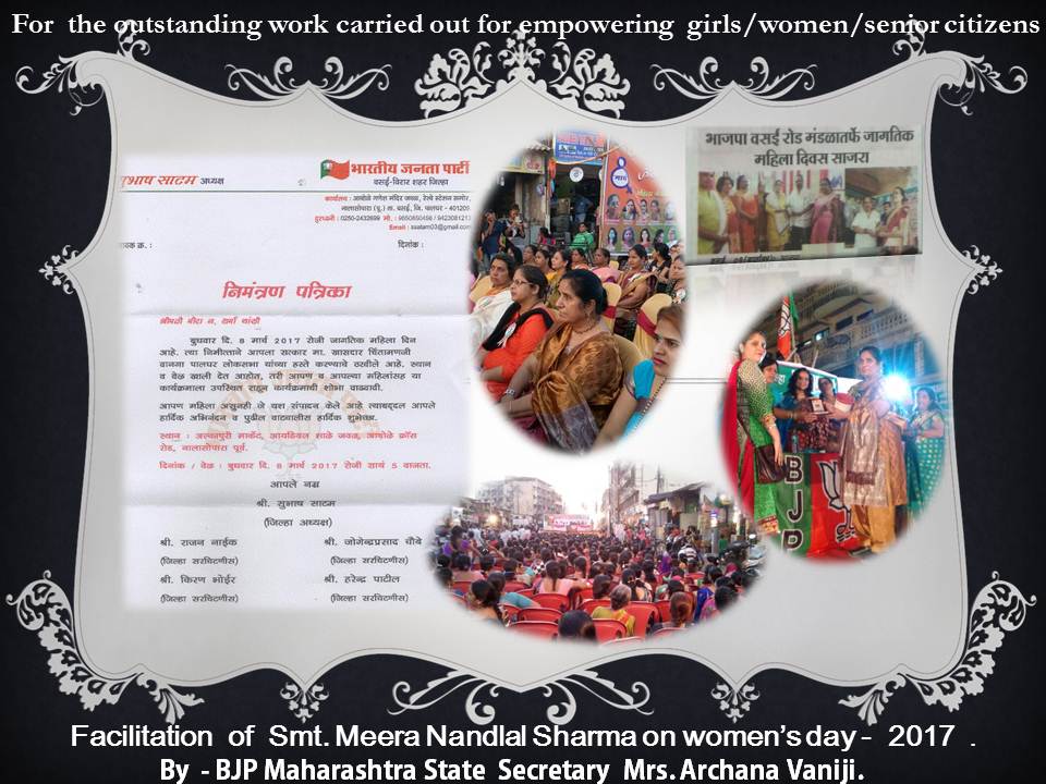 • HER EXCELLENCY FIRST MAYOR OF VASAI VIRAR MAHANAGARPALIKA