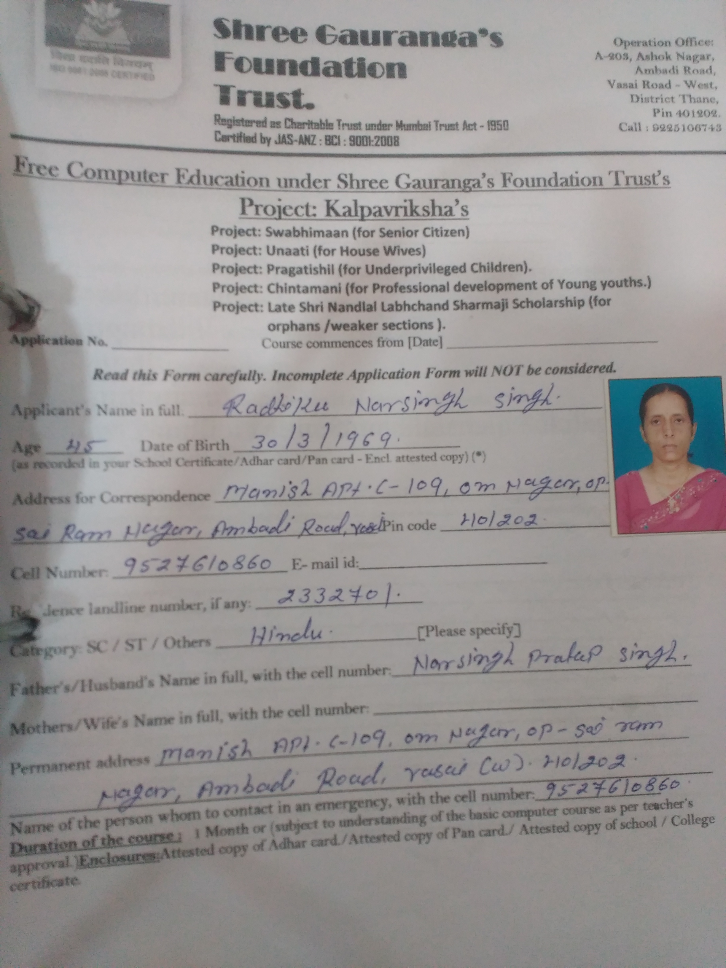 - ZILLA PRESIDENT/SARCHANIST VASAI-VIRAR : BJP